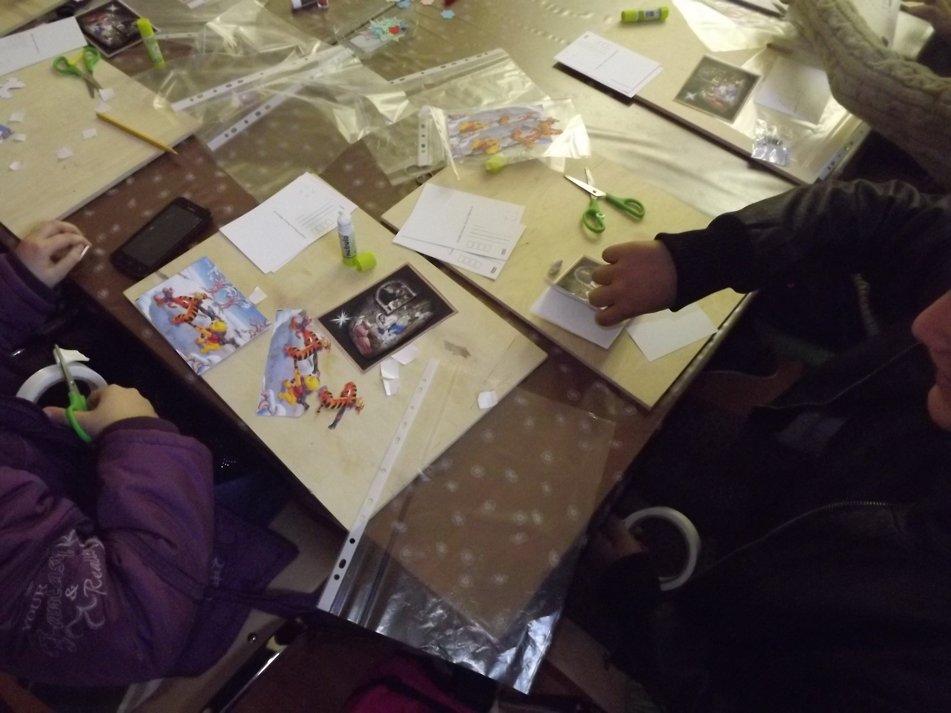 A gyerekek megtekinthették a gyűjteményi darabokat, válogathattak kerámia betétes, hímzett, préselt fémlemezes, dombornyomott, hajasbabás, csipke utánzatú stb. lapok között. Készítettek Petőfi Sándort, egy marosvásárhelyi Kossuth-szobrot, egy Szent Istvánt, illetve egy 1848-as témakört ábrázoló lapot. Puzzle darabokra szétvágott képdarabokat illesztettek össze, ragasztottak, képeslapot formáltak. Ppt előadáshoz kapcsolódó gyakorlati feladatokat oldottak meg. Az elkészített képeslapokhoz a diákok borítékot címeztek, igaz-hamis állításokról döntöttek, valamint híres meseírók mesehőseit keresték meg. A múzeum már bedigitalizált képeslapjait megtekintették a hungaricana.hu című oldalon. A weblapon több kategória szerint keresgéltek a tanulók, témakörök vagy címszavak szerint. Egy-egy hungaricana.hu-ról kiválasztott lapot készítettek, valamint dolgoztak 3 dimenziós technikával, száraz virágokkal, illetve filc anyagokkal is. Tabletek segítségével a hungaricana-n bibliai és karácsonyi történeteket megelevenítő képeslapokkal ismerkedtek. Kedvenc bibliai történetüket elevenítették meg különböző dekorációs kellékek segítségével. A képeslapok bélyeghelyéhez a diákok egy saját rajzot készítettek, a címzés rovatba felírták nevüket, a közleményhez pedig az iskolatársaiknak írtak–rajzoltak karácsonyi üdvözletet. Az egyik utolsó foglalkozáson a digitalizált képeslapokról szóló ismereteiket, a hungarica.hu weblapon történt kereséseket és ezzel kapcsolatos élményeiket elevenítették fel, majd megismerkedtek a képeslapok digitalizálásának folyamatával laptop és szkenner felhasználásával, illetve saját készítésű lapjaikat olvasták be és digitalizálták.